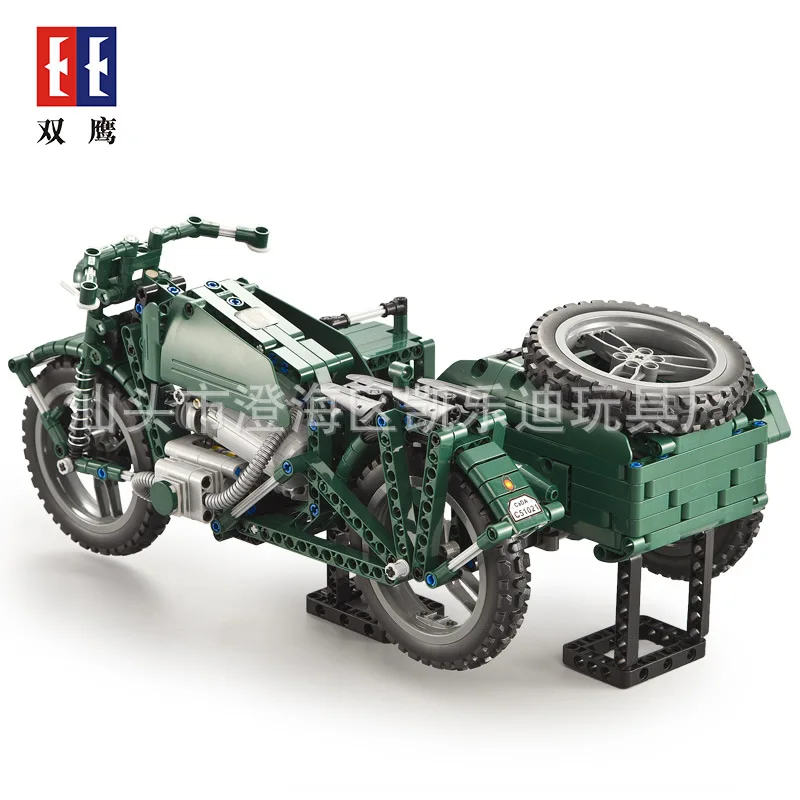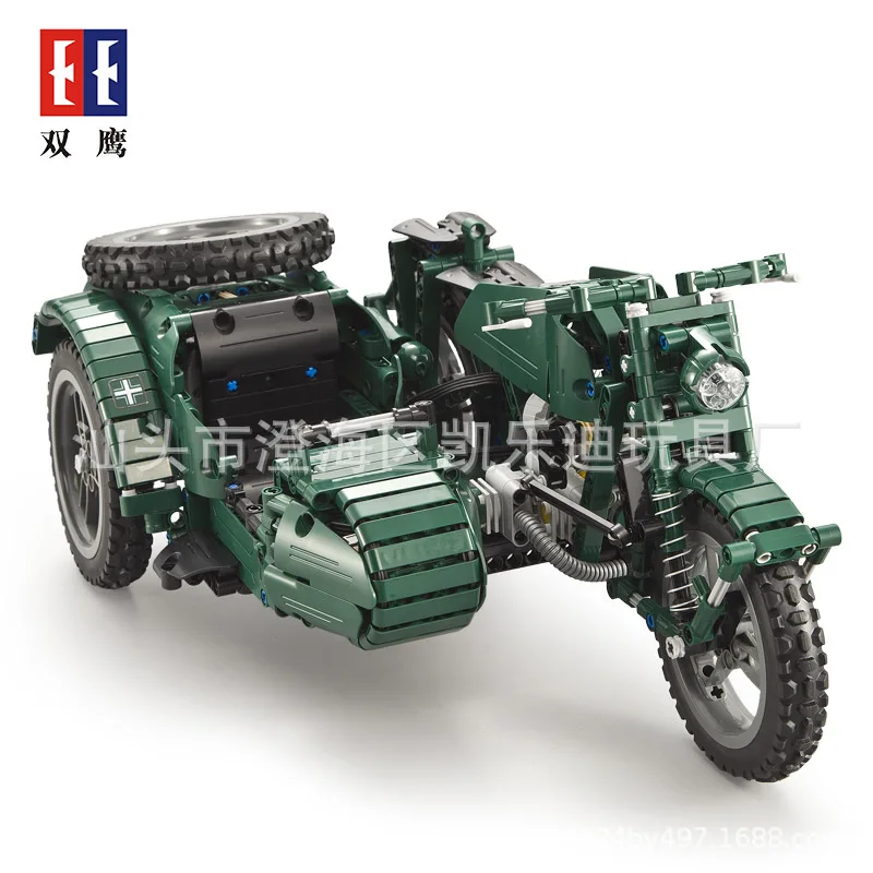 HIGH QUALITY Double e Click C51021 World War II Motorcycle Assembling Building Blocks Remote Control Model Scien