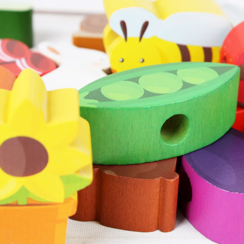 BEST QUALITY Beaded Bracelet Wood Large Threading Classic 1-3-5-Year-Old Fun Wooden Granule Building Blocks 10-3