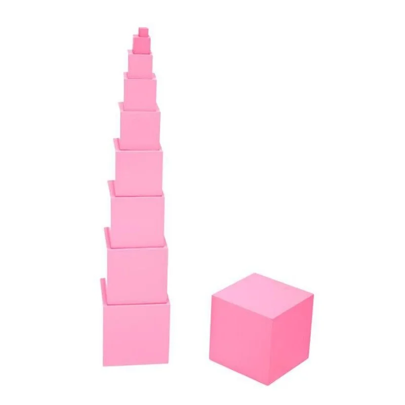 ORIGINAL Montessori Educational Wooden Building Block Toys For Children Pink Tower Toy Baby Development Prac