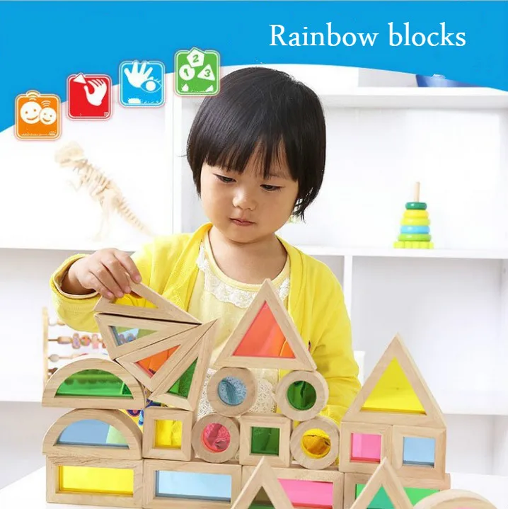 BEST SELLER Kindergarten Early Education: 24 Sensory Intelligence Rainbow Building Blocks Toys Acrylic Small Bu