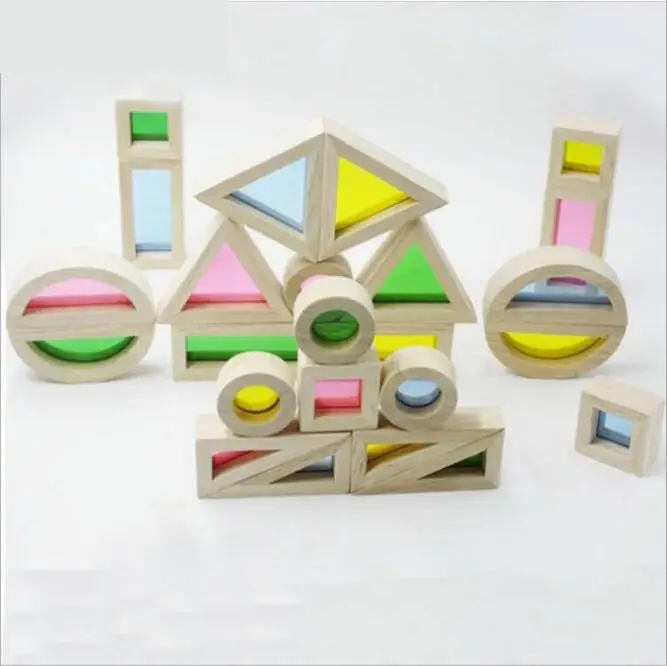 Kindergarten Early Education: 24 Sensory Intelligence Rainbow Building Blocks Toys Acrylic Small Bu