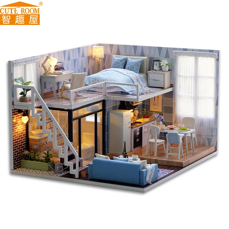 BEST QUALITY DIY Wooden House Miniaturas with Furniture DIY Miniature House Dollhouse Toys for Children Christma